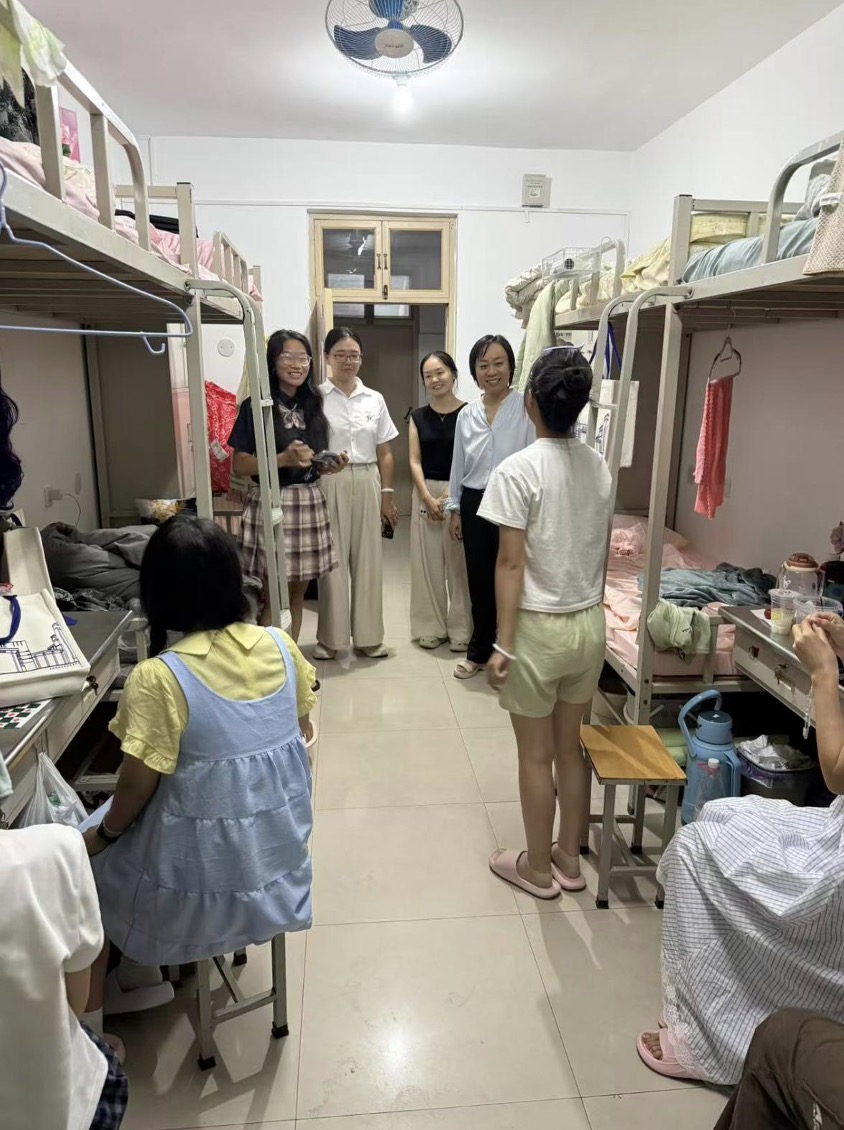 为全面掌握新生入住动态,筑牢校园安全防线,助力新生快速融入老员工活,9月15日晚,公司党委副书记许华珂带领新生辅导员、班主任深入2025级新生宿舍开展走访慰问,为新生送上入学“第一份温暖”。